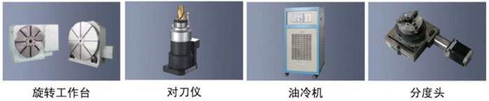 全系皆可選配西班牙發(fā)格系統(tǒng)、BT30系列氣動換刀電主軸、自動對刀儀、第四周(數(shù)控分度頭)、輔助工作臺及刀庫等。